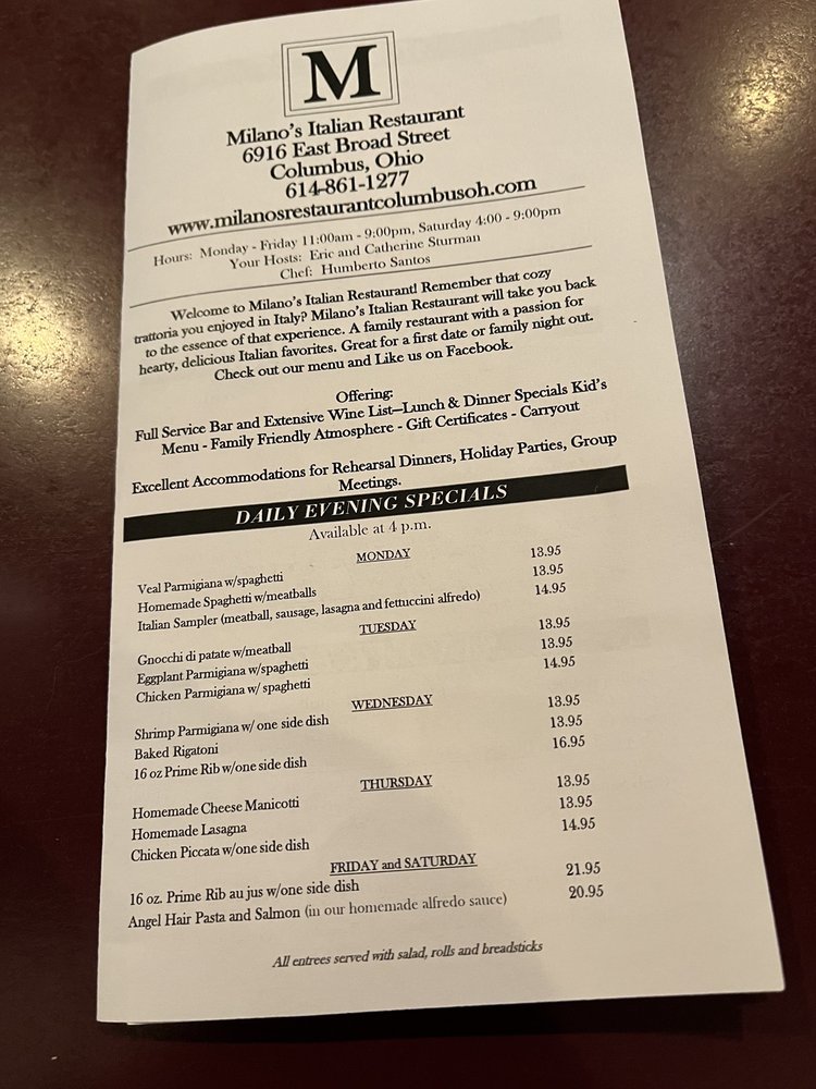 Welcome to Milano’s Italian Restaurant, a charming dining spot nestled at 6916 E Broad St, Columbus, OH. Specializing in Italian seafood dishes, Milano’s invites guests to indulge in a delightful culinary experience.